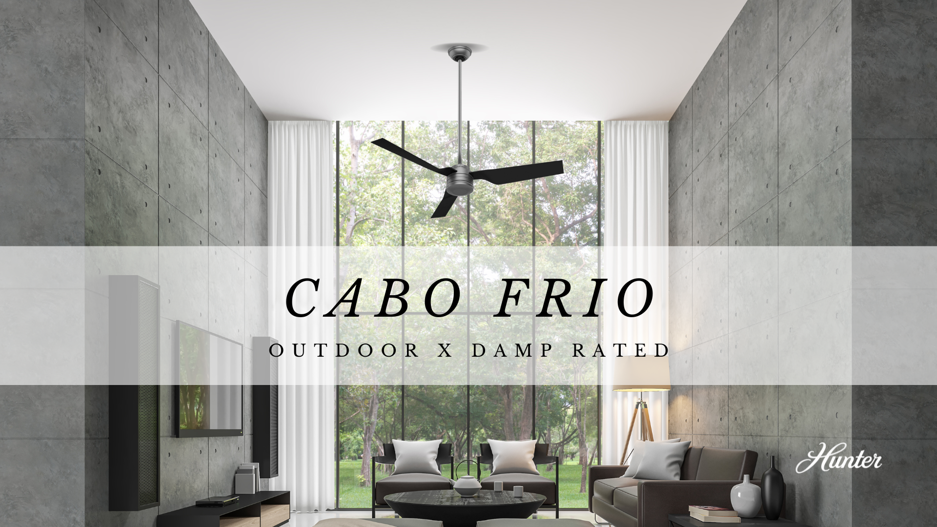 พัดลมเพดาน Hunter Fan รุ่น Cabo Frio สี Matte Silver ดีไซน์ Modern 3 ใบพัด พัดลมเพดานรุ่นนี้มีความพิเศษตรงที่เป็นพัดลมเพดานกึ่ง Outdoor ติดตั้งทั้ง Outdoor หรือ Indoor สามารถกันความชื้นได้ ด้านในมอเตอร์มีเคลือบกันความชื้นที่สายไฟทุกเส้น เคสเคลือบกันสนิม สามาติดตั้งภายนอกอาคารที่เป็นพื้นที่ใต้หลังคา หรือ บริเวณระเบียงได้ ด้วยดีไซน์เรียบหรู สบายตา และความสามารถในการเคลื่อนมวลอากาศที่ดี ทำให้พัดลมรุ่นนี้ได้รับอันดับ 2 ไปครอง ขนาดเส้นผ่านศูนย์กลางขณะพัดลมหมุน 132 เซนติเมตร หรือ 52 นิ้ว