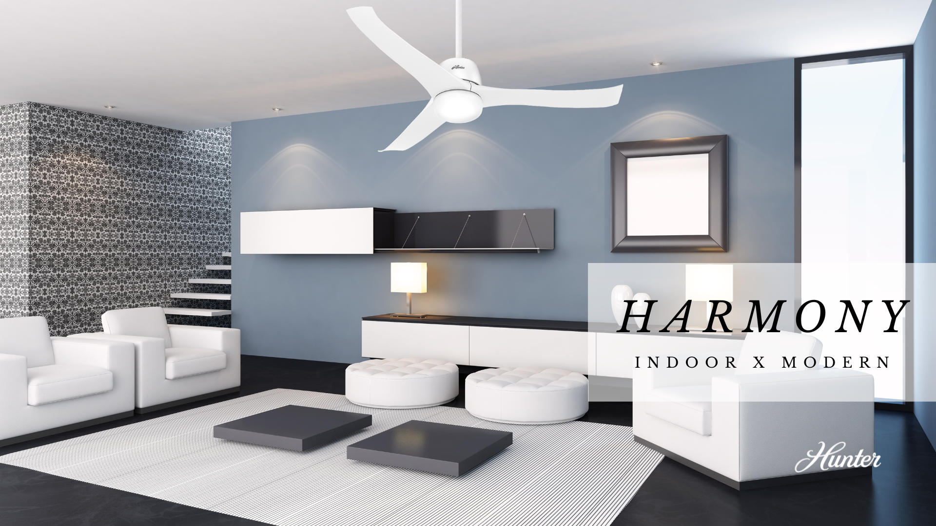 พัดลมเพดาน Hunter Fan รุ่น Harmony สี Fresh White เป็นพัดลมลมเพดานประเภท Indoor ดีไซน์ Modern 3 ใบพัด ด้วยดีไซน์พัดลมสีขาวทั้งตัว และมาพร้อมกับโคมไฟสีขาว พัดลมเพดานรุ่น Harmony มีความเรียบหรูแบบโมเดิร์นแต่ยังคงไว้ซึ่งความโค้งมนของใบพัด ทำให้พัดลมเพดานรุ่น Harmony มีความโดดเด่นและเข้ากับบ้านได้ง่าย นอกจากนี้ยังเป็นพัดลมเพดานที่สามารถเคลื่อนมวลอากาศได้สูงมาก ขนาดเส้นผ่านศูนย์กลางขณะพัดลมหมุน 137 เซนติเมตร หรือ 54 นิ้ว
