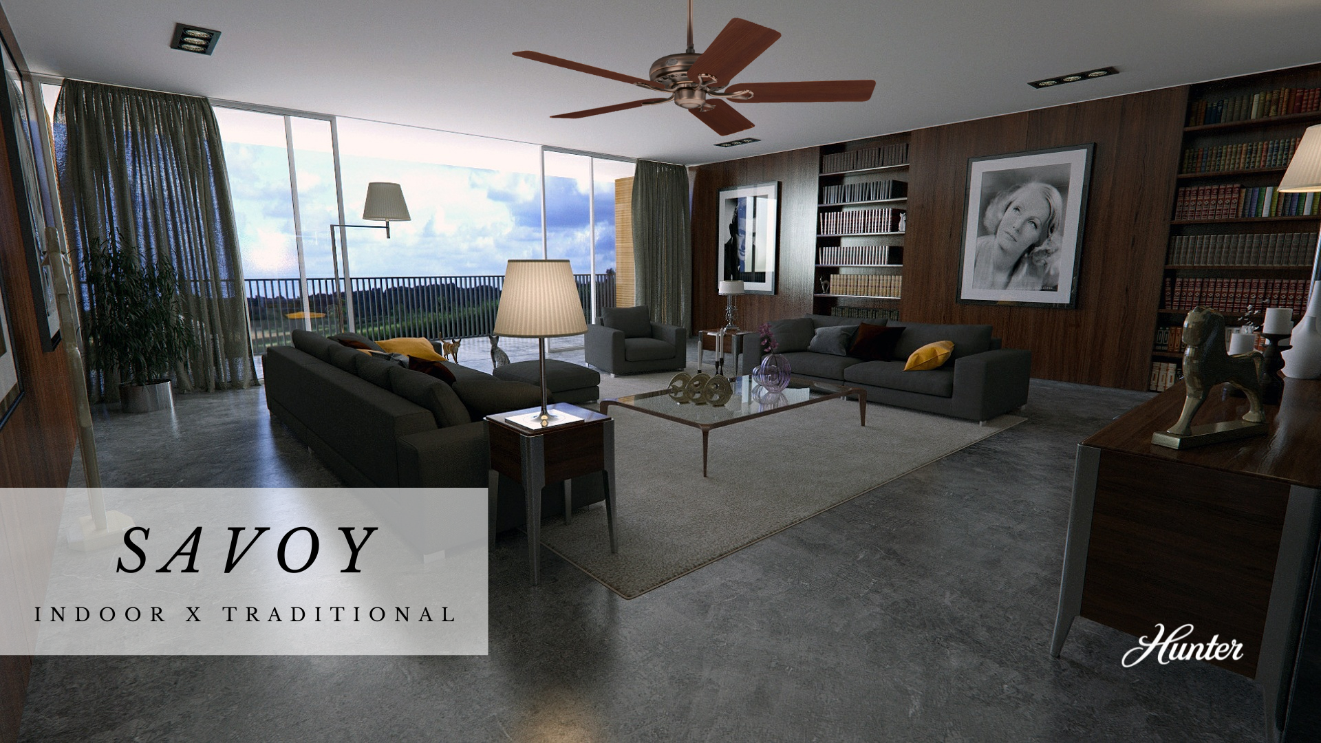พัดลมเพดาน Hunter Fan รุ่น Savoy สี Amber Bronze ดีไซน์ Classic เป็นพัดลมเพดานประเภท Indoor 5 ใบพัด Savoy เป็นอีกรุ่นยอดนิยมที่คนไทยนิยมซื้อ ด้วยดีไซน์ Traditional Classic และโทนสีเข้มของ Amber Bronze หรือสีทองแดงแบบ Antique และใบพัดลายไม้ distressed cherry ที่แสดงถึงกลิ่นอายความของหรูหราของงานสถาปัตยกรรมตกแต่งในอดีต ทำให้เข้ากับบ้านสไตล์คลาสิกแบบไทยหรือแนวยุโรปก็ดี ขนาดเส้นผ่านศูนย์กลางขณะพัดลมหมุน 132 เซนติเมตร หรือ 52 นิ้ว