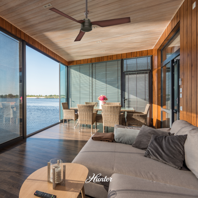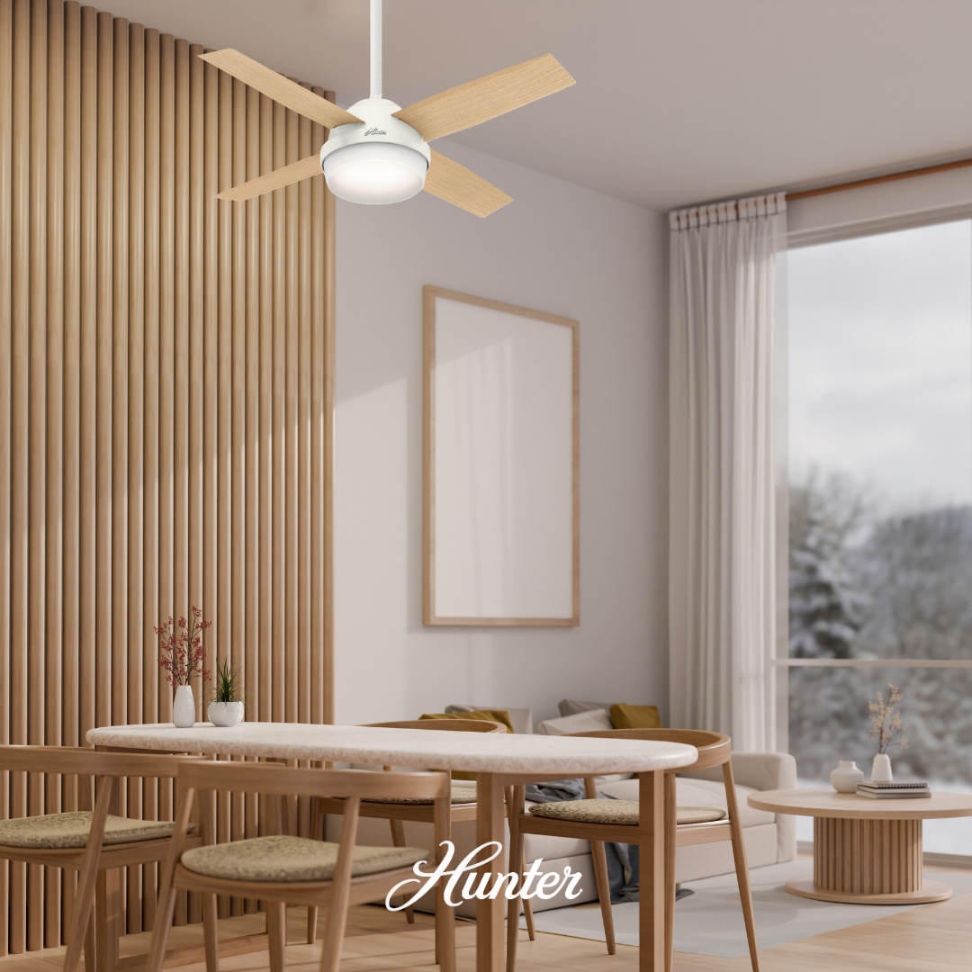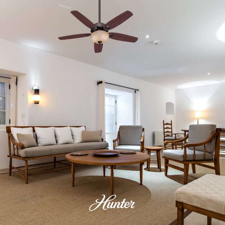 เนื่องจากจากการหมุนเวียนอากาศภายในห้องของพัดลมเพดาน Hunter สามารถช่วยให้ห้องเย็นลง 3-5 องศาในฤดูร้อน เครื่องปรับอากาศของคุณจึงไม่ต้องทำงานหนักเพื่อทำให้บ้านของคุณเย็นลง ในฤดูหนาว