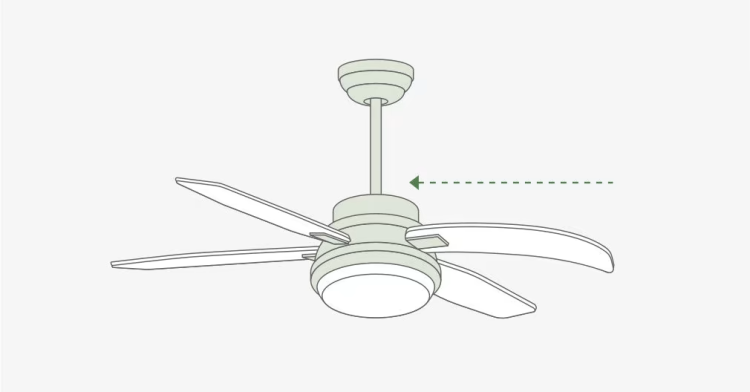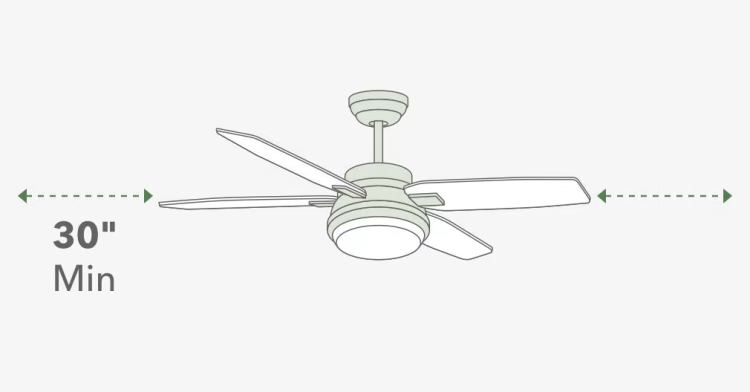 ปิดพัดลมและใช้สายวัดเพื่อให้แน่ใจว่าปลายใบพัดของพัดลมมีระยะห่างจากวัตถุที่ใกล้ที่สุดอย่างน้อย 30 นิ้ว เพื่อความปลอดภัย คุณอาจต้องใช้บันไดหรือเก้าอี้พับเพื่อเอื้อมวัดพัดลม
