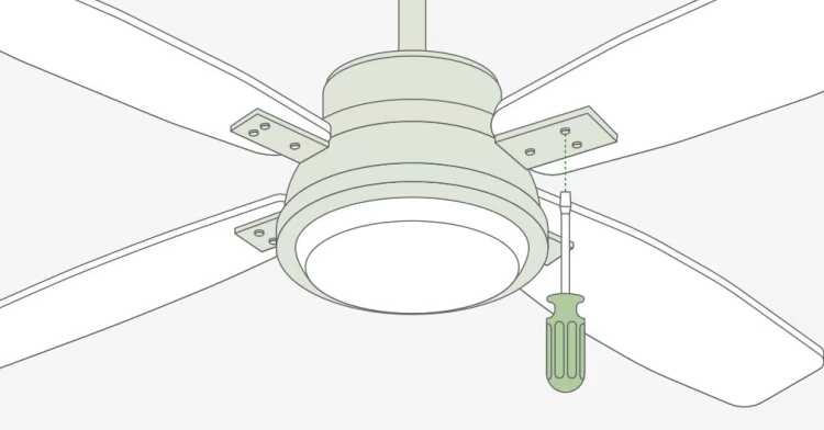 การทำงานปกติของพัดลมอาจทำให้สกรูของพัดลมเพดานคลายตัวได้ ขันส่วนประกอบของพัดลมทุกส่วน บนฐานพัดลม แกนยึด สกรูยึด ใบพัด และชุดไฟให้แน่น