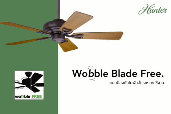 ด้วยเทคโนโลยีป้องกันการสั่นสะเทือนของใบพัดเฉพาะจาก Hunter Fan พัดลมเพดาน Hunter แต่ละตัวผ่านการทดสอบการป้องกันการสั่นสะเทือนของใบพัดอย่างพิถีพิถัน ทำให้ได้รับประสบการณ์ที่เงียบสงบและปราศจากเสียงรบกวน ระบบ Wobble-Free® แสดงให้เห็นถึงความมุ่งมั่นของเราในการสร้างสรรค์นวัตกรรมและประสิทธิภาพที่ไม่มีใครเทียบได้ในพัดลมเพดาน Hunter ทุกตัว